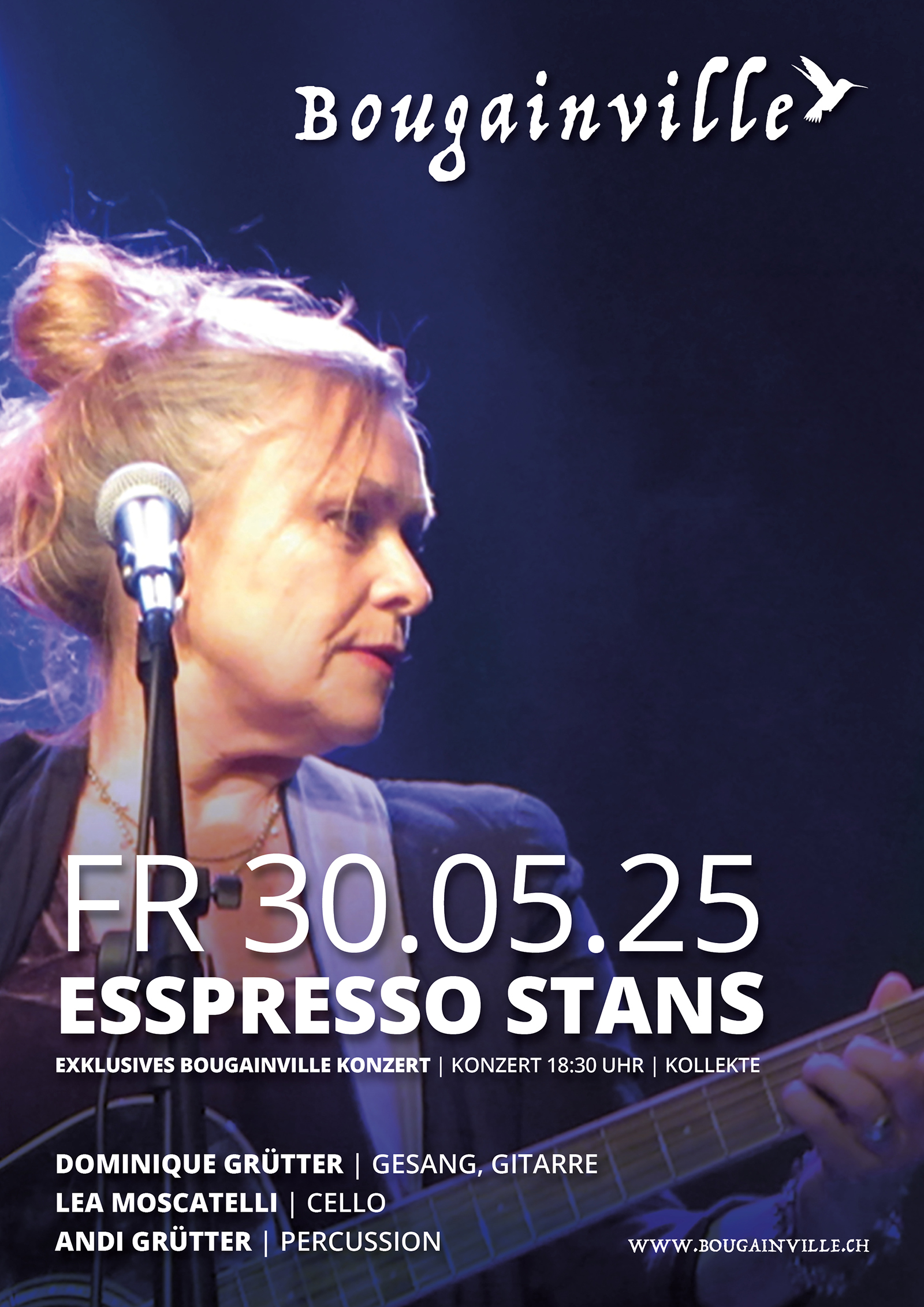 Dominique Grütter: Gesang, Gitarre | Lea Moscatelli: Cello | Andi Grütter: Percussion